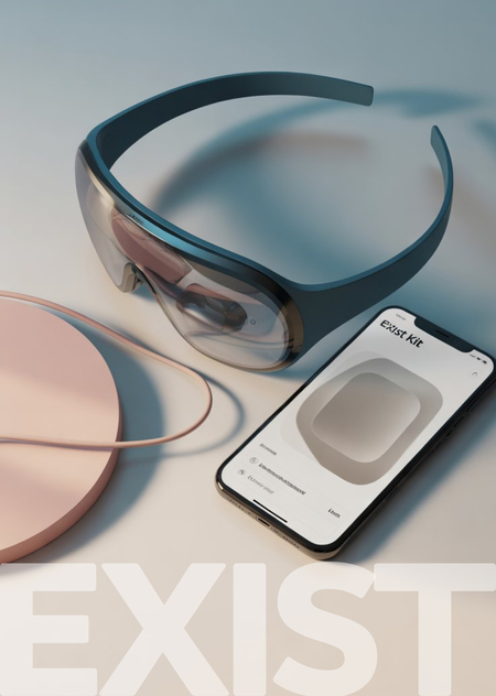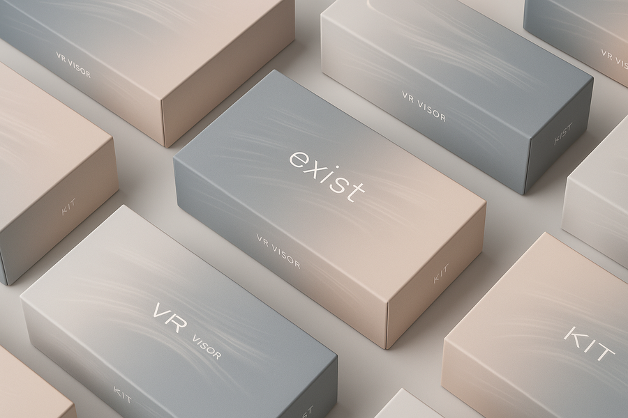 Сначала я сгенерировала варианты визуального образа продукции. На этом этапе я экспериментировала с формой, цветом, текстурой и атмосферой, чтобы продукт выглядел футуристично, лёгко и технологично — в точке пересечения минимализма и поэтичной айдентики бренда exist.