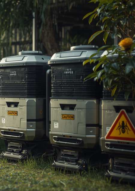 Промт: a photo of modernized apiary, futuristic, clean, poison danger