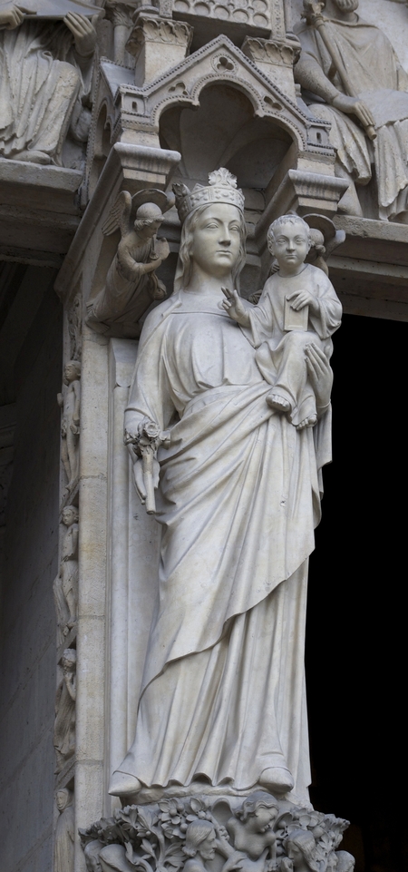 4. Царственная функция — в фигурах на порталах и фасадах соборов Мадонна может быть изображена как королевская, подчёркивая её статус Царицы Небесной и посредницы в божественных делах.