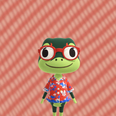 1. frog in a red Hawaiian shirt and blue glasses 2. a frog in a gray coat