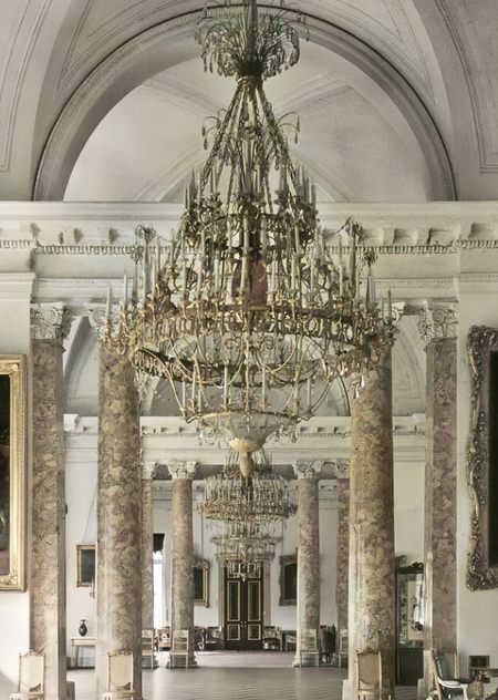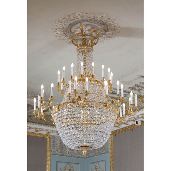 Богатые и сложные люстры в дворцовых интерьерах XVIII–XIX веков служили прямым и хорошо читаемым знаком богатства и власти. Их масштаб, многоярусность и дорогие материалы — бронза, позолота, хрусталь — наглядно демонстрировали доступ владельца к редким ресурсам и лучшим мастерам.