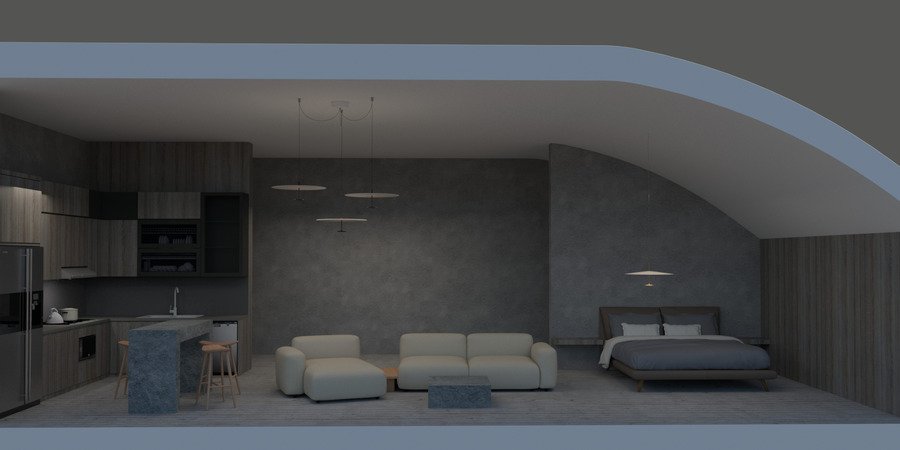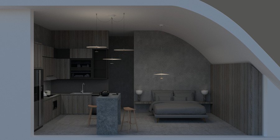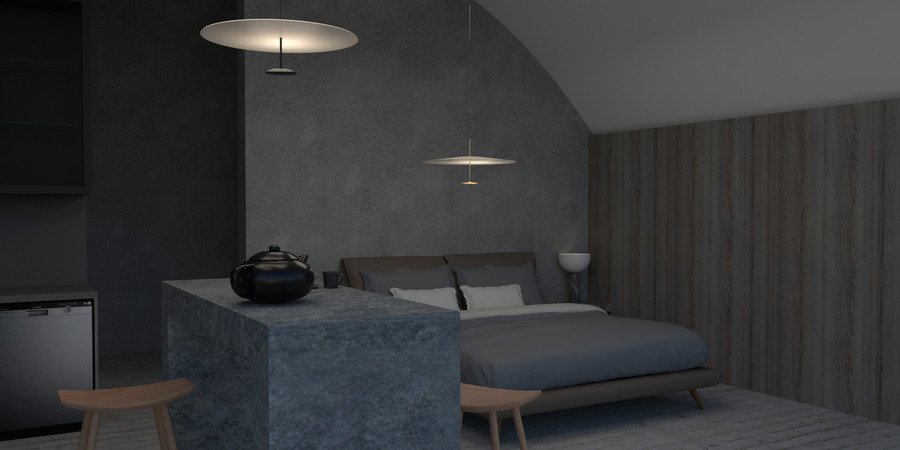 Интерьеры минималистичные и подчеркивают некую «воздушность» благодаря контрасту стабильных каменных предметов мебели с легкими элементами.