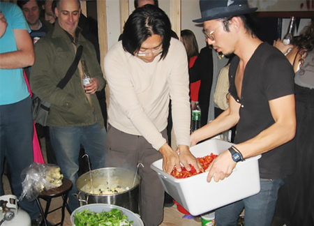 Вкус и обоняние — каналы, через которые ребёнок познаёт мир, а еда в детских играх («понарошку» или всерьёз) часто становится поводом для социализации. Так, Риркрит Тиравания в серии своих проектов занимается приготовление пищи. Оборудуя в музеях полевую кухню, он создает пространство для совместного действия, для диалога и общения. Это не просто эксперимент с сенсорикой: разделяя пищу, участники выстраивают связи, обсуждая личные и культурные темы. Как в детской игре где важен процесс общения, работы Тиравания стирают грань между бытовым и художественным, напоминая, что искусство рождается в диалоге.