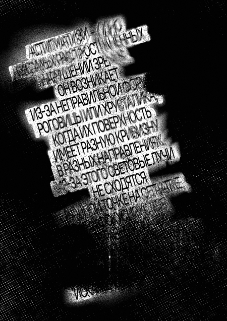 В плакатах я использую визуальные приёмы — размытие, смещение, искажения, — которые олицетворяют отсутствие единой фокусной точки и постоянное колебание чёткости.