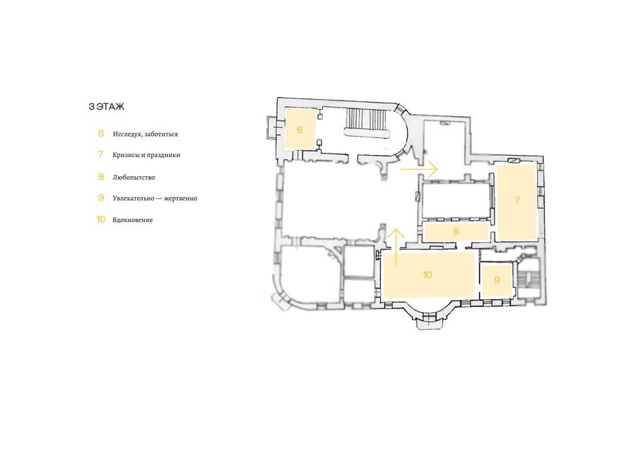 Каждое пространство отражало разные аспекты исследовательского пути. Закрученный, как спираль улитки, маршрут охватывал весь особняк.
