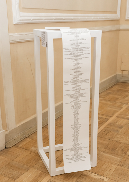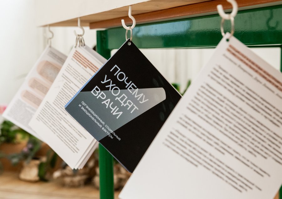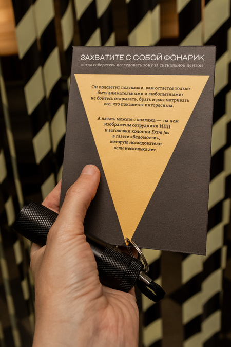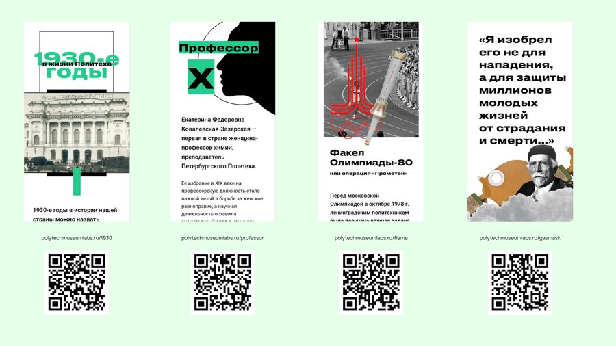 Часть контента можно было изучить на бумажных носителях, лонгриды — с телефона по QR-кодам на этикетках.