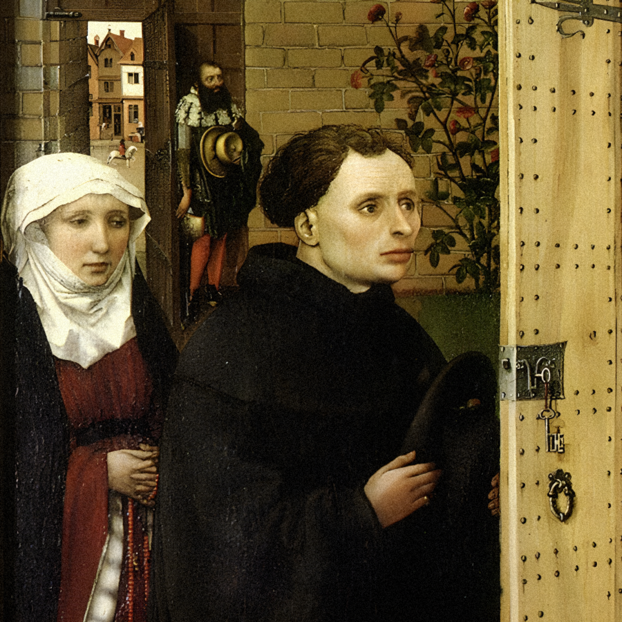 Чтобы понять, почему донатор вообще появляется внутри картины, важно представить себе обстановку того времени. В XV веке Бургундские Нидерланды — это богатый край с активной городской жизнью, торговлей, кредитами и сильной позицией городских элит. Религиозная живопись по-прежнему главная, но теперь заказывать её могут уже не только правители и высшее духовенство, но и зажиточные горожане: купцы, чиновники, члены цехов. Картина становится одновременно знаком общественного положения и выражением личной веры: крупные алтари пишут для приходских церквей, сложные полиптихи — для семейных капелл, а небольшие диптихи и триптихи — для тихой домашней молитвы.