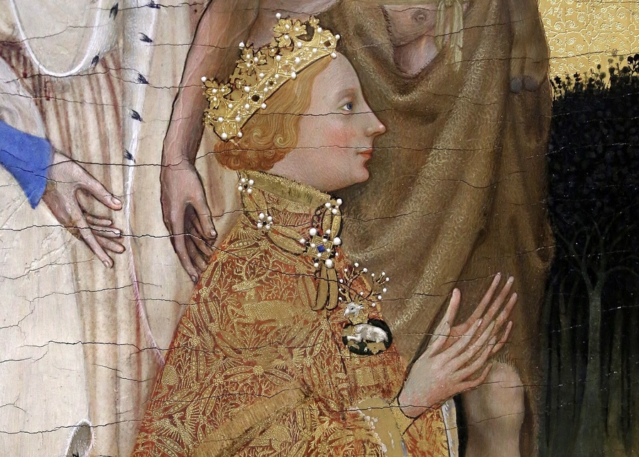 При ближайшем рассмотрении видно, что портрет короля и портрет Девы Марии написаны одинаково сглаженно и мягко. Это указывает как на «обожествление» Ричарда II, так и на средневековую традицию изображать лица и тела условно, показывая незначительность материального перед духовным. Фигура короля меньше относительно святых. Хоть он и «помазанник» Божий, но в иерархии стоит ниже остальных.