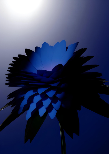 Пробуждение — процедурная анимация раскрытия хризантемы: от крошечного бутона до полного цветка. Я выбрала синий фон и синий цветок, потому что этот холодный предрассветный цвет подчеркивает момент оживания и делает раскрытие похожим на настоящее пробуждение.