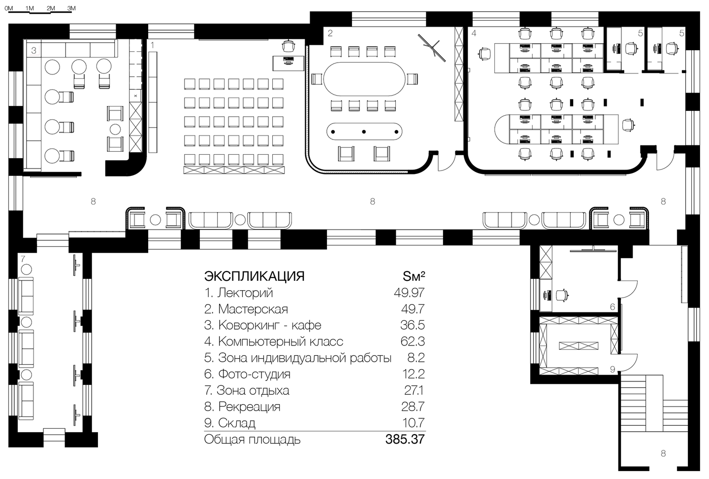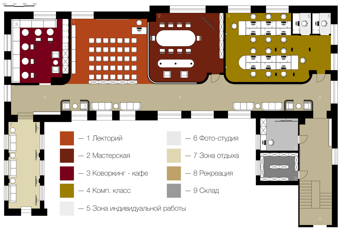 Разработка учебного кластера для московского кампуса НИУ ВШЭ в духе советского авангарда.