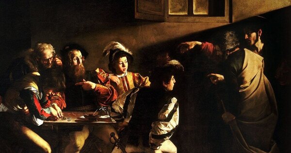 В картине «Призвание святого Матфея» (1599–1600) Караваджо показывает евангельскую историю как драму из реальной жизни. Действие происходит в тёмной таверне, где сборщик налогов Левий (будущий Матфей) сидит с друзьями. Главное здесь — луч света, идущий от Христа и Петра. Этот свет — как «перст Божий», который разделяет мир на свет веры и тьму обычных забот. Свет направлен прямо на Матфея, концентрируя внимание на жесте Христа и удивлении Матфея, который как бы спрашивает: «Я?». Тень от Христа — это не просто тень, это граница между старой жизнью Матфея (расчёты, деньги) и новой, куда зовёт его Бог.