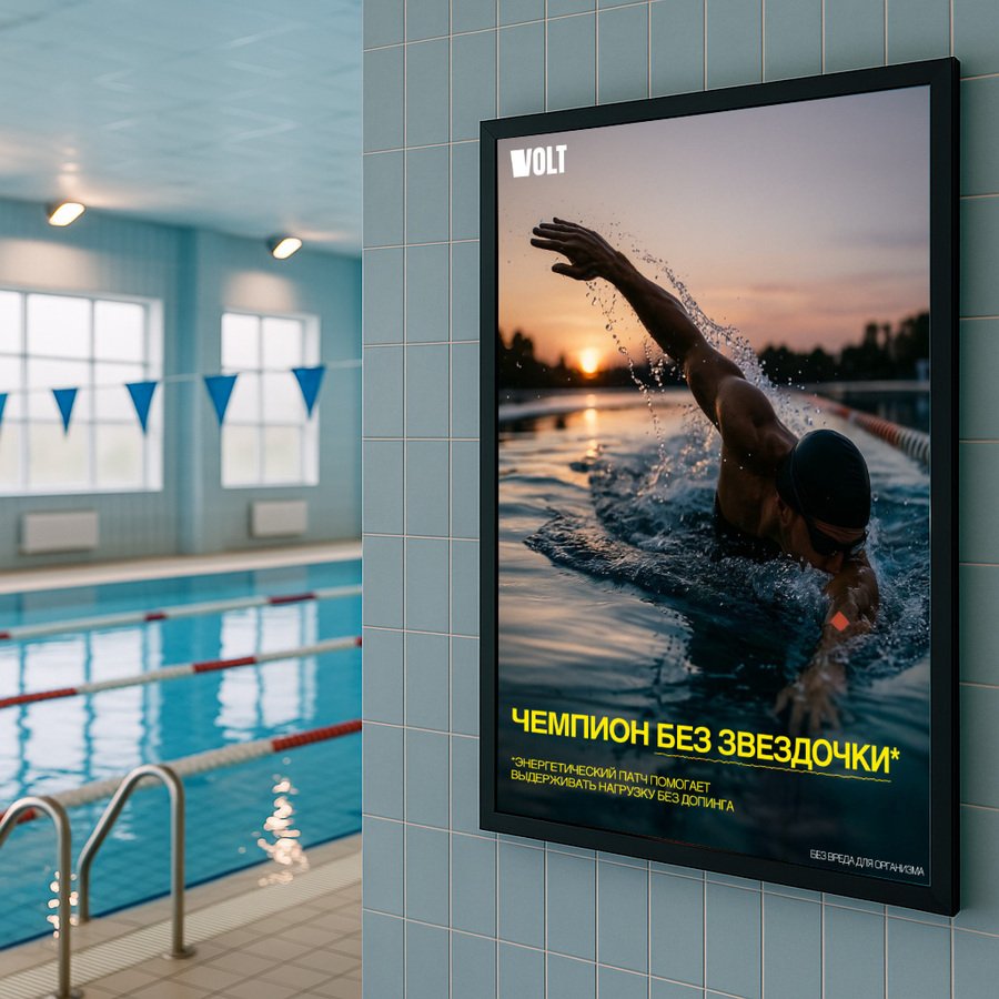 Гипотеза: Если в рекламной кампании сделать акцент на том, как энергопатчи VOLT встроены в реальную жизнь людей — от студентов и медиков до профессиональных спортсменов, — бренд сможет чётко выстроить позиционирование продукта как безопасного инструмента поддержки в моменты высокой нагрузки. Образы спортсменов, их результаты, в сочетании с заголовками, прямо отрицающими связь с допингом, формируют образ «чистой» энергии, за которую не нужно оправдываться. Такая стратегия подчёркивает прозрачность и легальность продукта, выделяет VOLT на фоне агрессивных стимуляторов и закрепляет за ним репутацию честной, надёжной альтернативы.