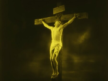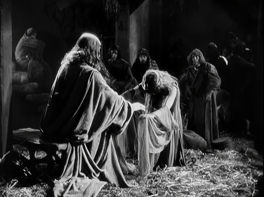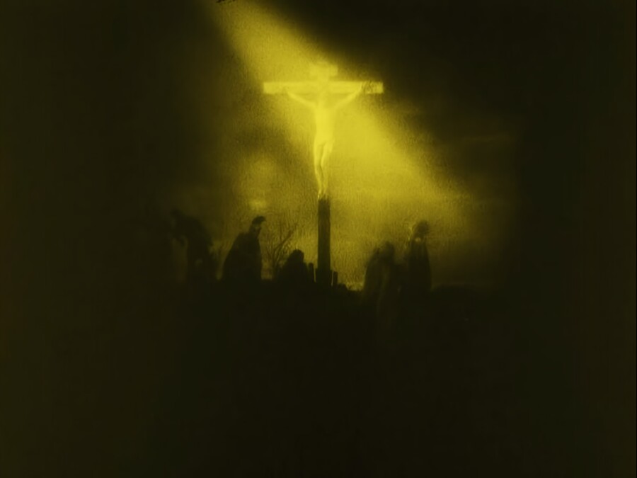 Освещение в низком ключе и контрастность в сцене распятия Христа делают эти кадры особо выразительными и драматичными. Такие приемы подчеркивают жестокость наказания и усиливают эмоциональность образа страдания.