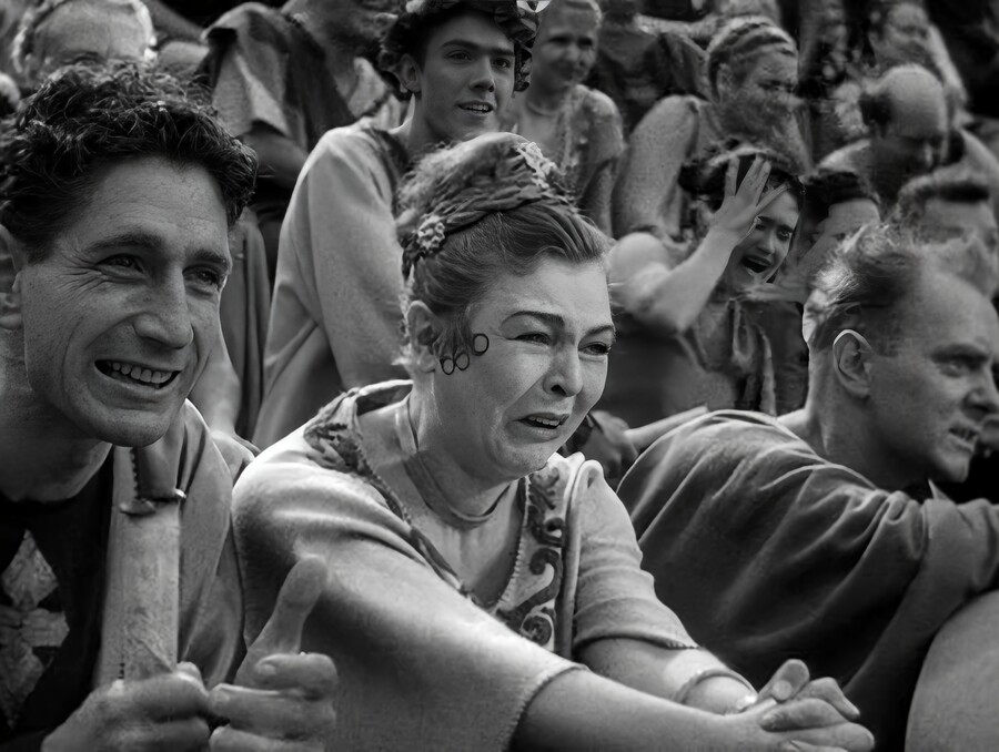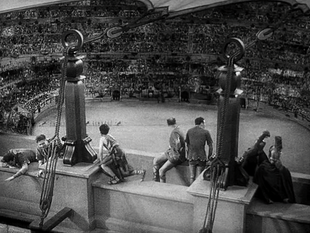 В сцене боев в Колизее крупные планы плачущих и удивленных зрителей придают драматизм эпизоду и указывают на внутренний перелом общества. Некоторые горожане стали сомневаться в правоте и справедливости власти.