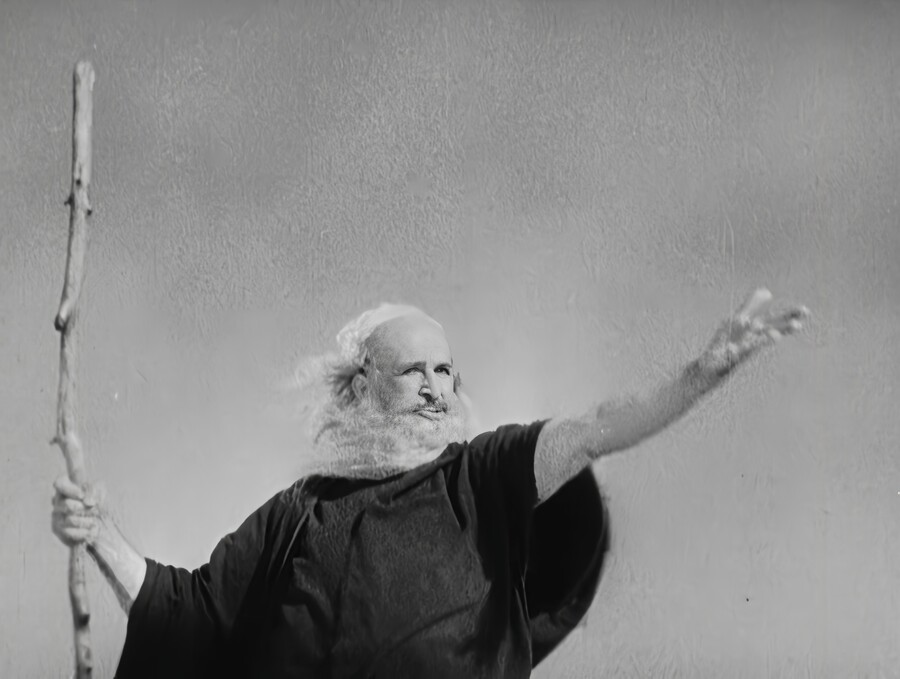 Моисей — олицетворение морального идеала. Он всегда стоит с вытянутой спиной и раскрытыми руками — символ стабильности религии и открытости ко всем желающим. Съёмка с нижнего ракурса и композиционное возвышение героя над толпой подчёркивают его богоизбранность, духовный авторитет и значимость в сюжете.