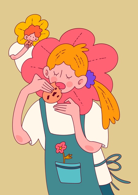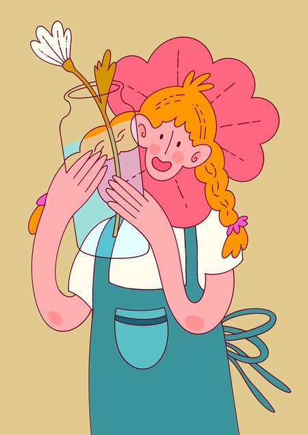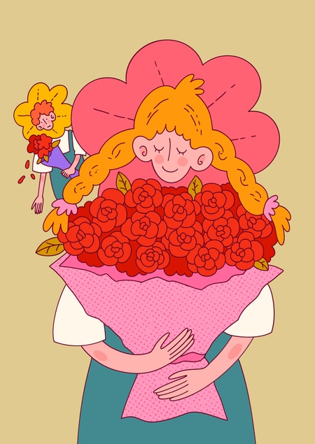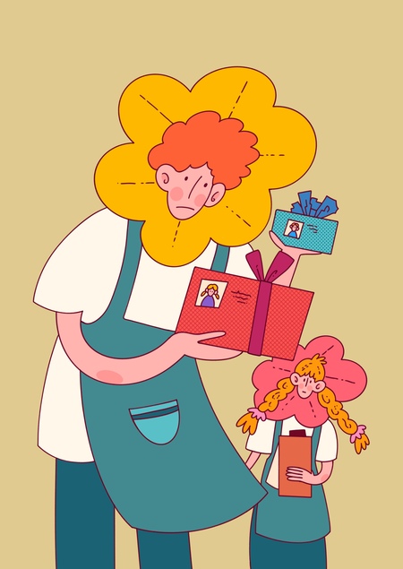 Серия иллюстраций создана для открыток к вымышленным праздникам — таким, какие могли бы дарить сотрудники этого цветочного кафе.