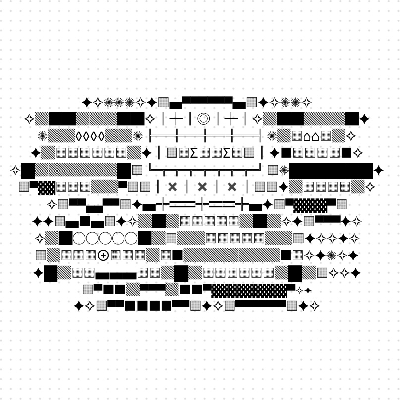 Серия иронизирует над попытками очеловечить ИИ. Вместо подражания — радикальная абстракция: алгоритм, словно слепой инженер, переводит учебные термины в символьные, техничные уравнения, переосмысленные с точки зрения искусства. Плотность ░▒▓ отражает сенсорную перегрузку, словно ИИ, не понимая «нормы» чувственности, вываливает всю сложность восприятия разом. Это искусство без эмпатии — холодная топография процессов, где красота рождается из конфликта кода и воображения, из понимания, что работы созданы угадывающим чувства, уподобленным в наивности ребёнку алгоритмом.