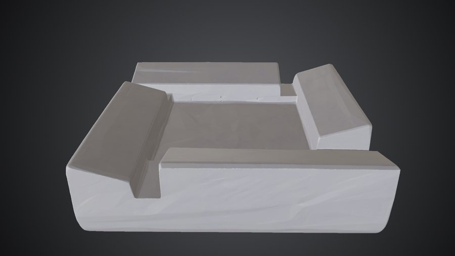 Фактура: Естественная фактура от печати (слоистость) является частью эстетики брутализма. Для «металлических» объектов допустима легкая текстурная шероховатость. Для «каменной» пепельницы — выраженная, грубая фактура.