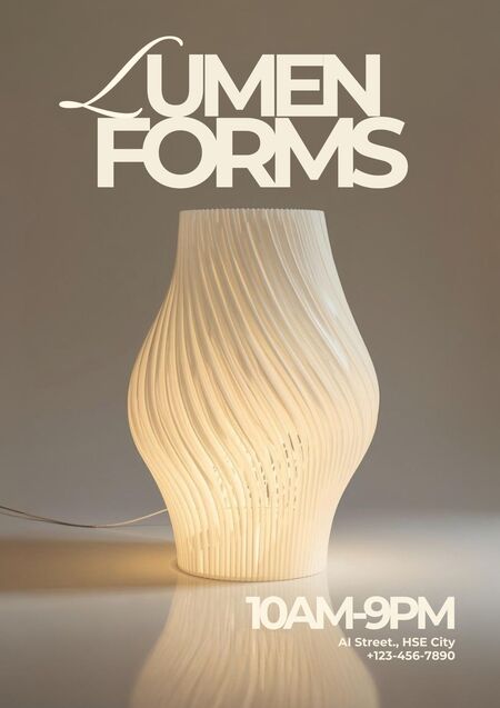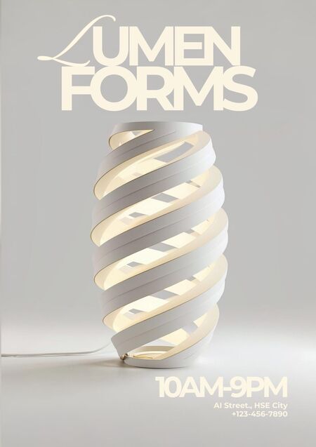 Мой проект — серия светильников «Lumen Forms». Каждый светильник представляет собой уникальный объект с продуманной формой: ритмичные прорези, спиральные линии, ячеистые структуры, плавные волны и вертикальные разломы. Эти формы создают интересные светотеневые эффекты и объединяются единым стилем — минимализм, футуристичная эстетика и параметрический подход. Серия состоит из пяти объектов, каждый из которых исследует взаимодействие света и объёма по-своему, создавая гармоничное сочетание функциональности и декоративности.