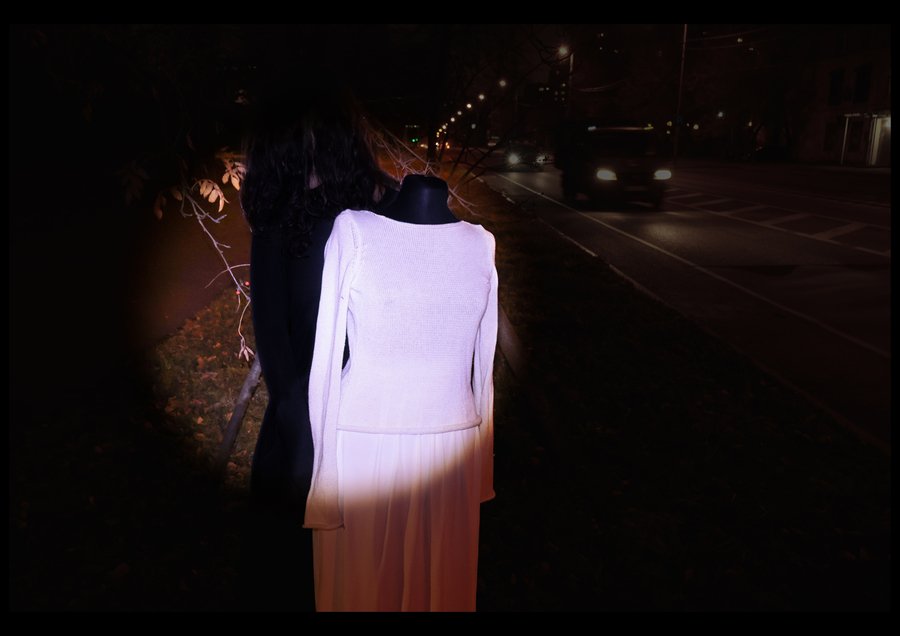 Для прошлого модуля мною была создана серия фото, отражающая, что появляясь перед людьми в разных образах, мы можем рассказывать свою историю иногда даже ярче, чем произнося ее вслух. Изобразила я это с помощью затемнения человека и вытеснения на первый план самой одежды.