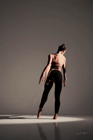cinematic motion piece combining live-action dancer photography with animated graphic lines for contemporary dance brand «LÍNEA» (keep acute on Í). Style: fashion-editorial minimalism meets Bauhaus geometry. elegant, kinetic, human. Scene: dancer in expressive motion under soft directional light, neutral studio background (white or warm gray). subtle motion blur captures movement. monoline terracotta (A64B36) and graphite (1A1A1A) strokes trace motion paths of arms, torso, and legs — following the choreography with a smooth delayed reveal and fade. lines never cross the face, flow around it; constant stroke weight, precise spacing, refined terminals, no glow or gimmicks. Camera: static or slow dolly; dancer performs 3–4 gestures; line animation lags 120–200 ms then dissolves before the next phrase. Color & Light: brand palette only — terracotta, graphite, warm gray (E5E1DC), white; optional accent red (D32027 < 5%). soft contrast, clean daylight tone. no jitter, gradients, 3D, or lens flares.