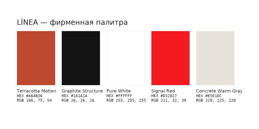 ДНК: монолинейная пластика, баланс дуги и диагонали, конструктивистская строгость.