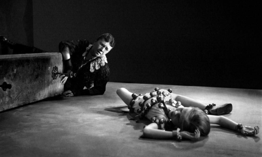 Человек оказывается слишком маленьким по отношению к окружающим формам — огромные своды, широкие арки, массивные стены давят, нарушают пропорции и воссоздают чувство тревоги. В некоторых сценах геометрия пространства искажена при помощи перекрёстных теней, съёмки под наклонёнными углами и монтажных рывков. Эти методы делают пространство крайне нестабильным, почти агрессивным.