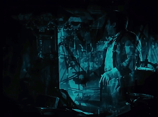 Дюлак активно использует также технику наложений и прозрачностей: пространство как будто двоится, превращаясь в призрачное и плавающее, напоминающее большой мыльный пузырь или купол. Это усиливает впечатление, что герой находится не в едином непрерывном мире, а в серии фрагментарных зон. Такое пространство напоминает непрерывный поток в бессознательном, где образы накладываются друг на друга без структурной логики. Зритель воспринимает это не как последовательность локаций, а как перемену внутренних состояний.
