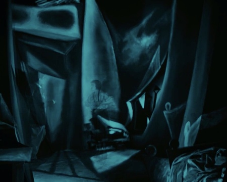Следующая выразительная черта появляется в третьей части — это обилие острых углов и диагоналей, которые ломают привычную логику пространства. Линии декораций пересекаются под неестественными углами, направлены против перспективы и часто накладываются друг на друга так, что невозможно определить точную форму помещения.