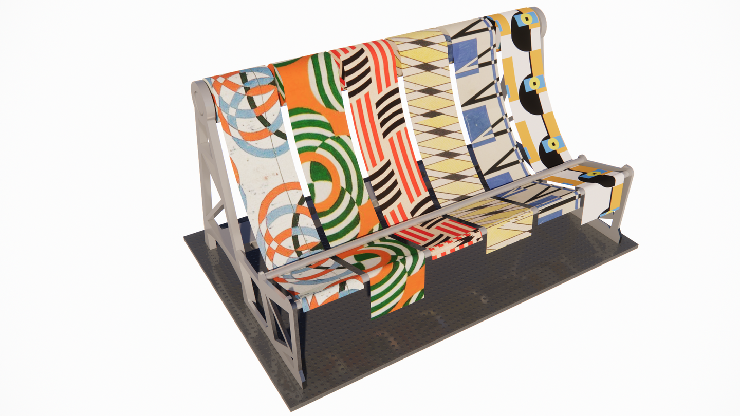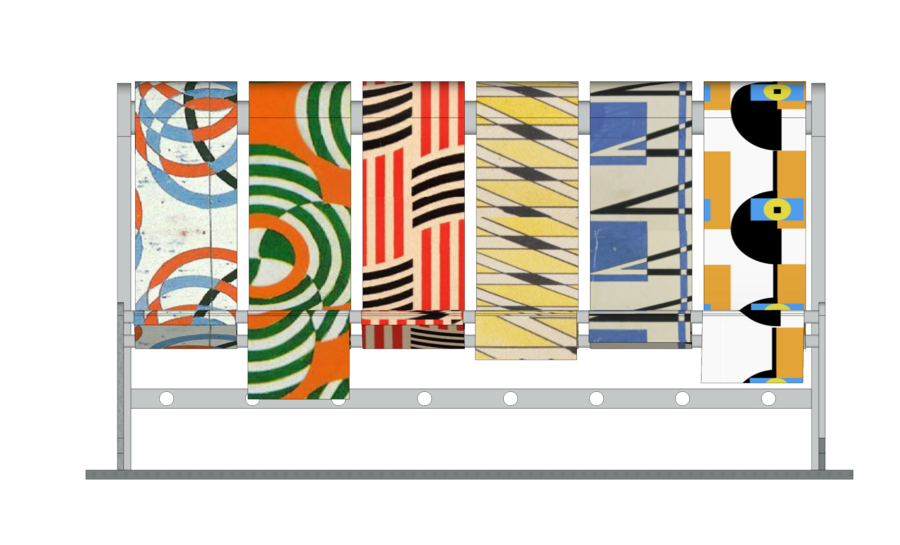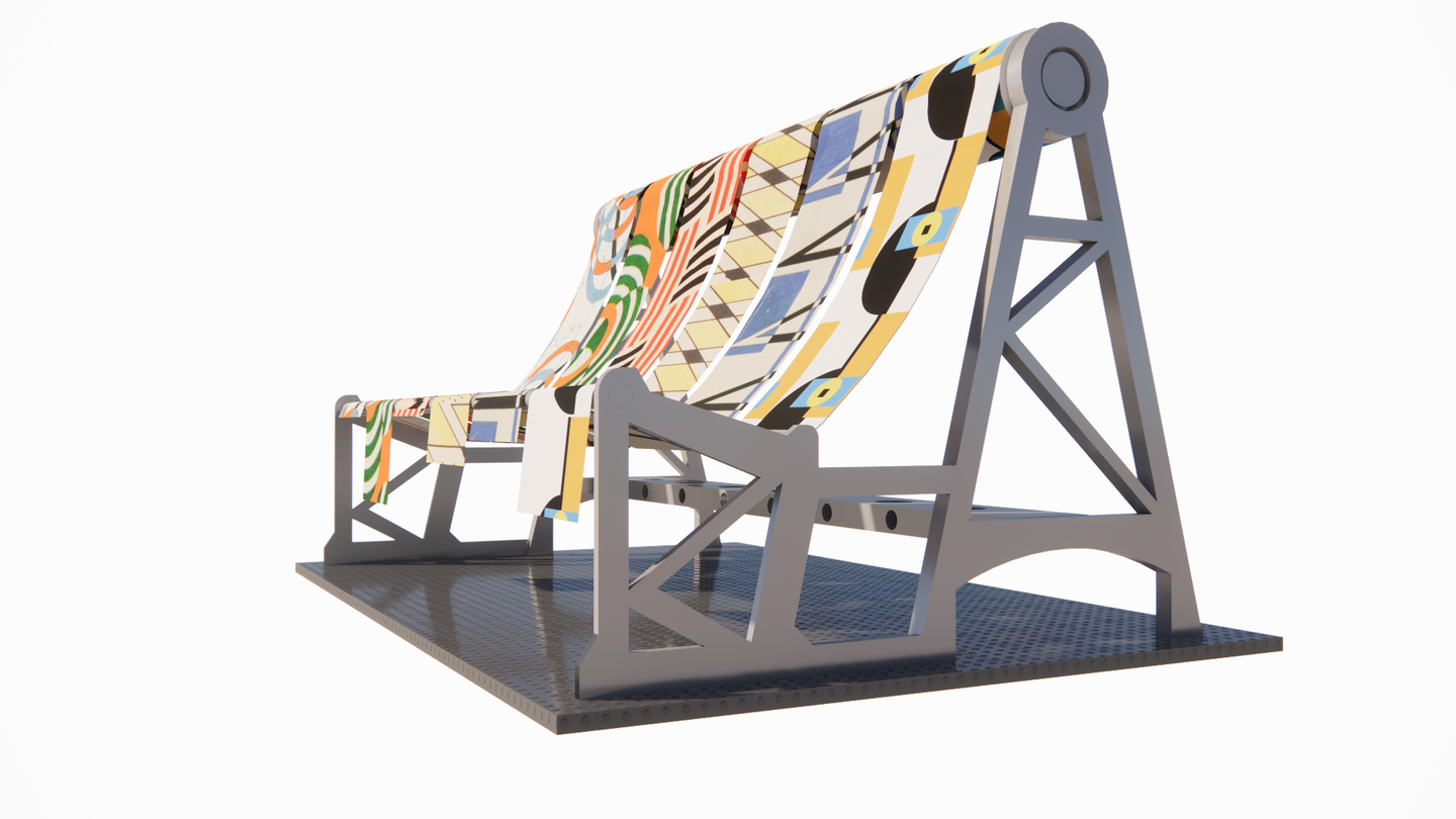 Внешний вид данного арт-объекта отсылает зрителя к ткацкому станку 1920-х. Ткань можно отрезать в нужном количестве.