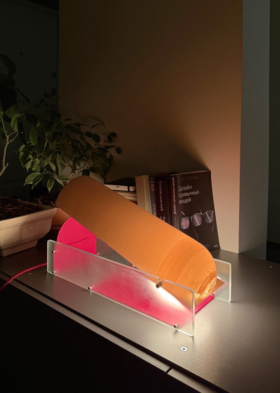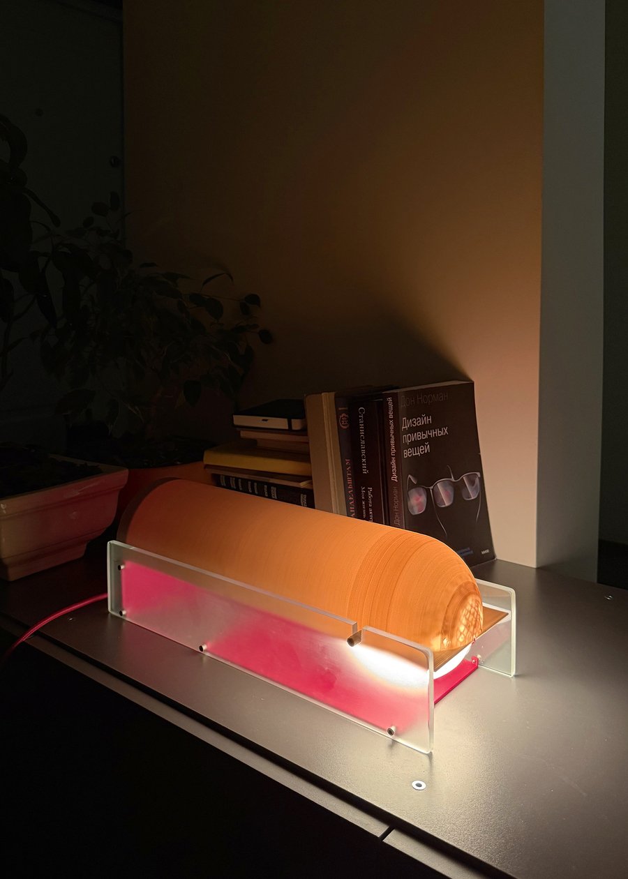 Emmitend — это светильник, который задает комнате световой ландшафт. Вдохновлен надеждой на свет. Свет регулируется механически, физическое взаимодействие концентрирует внимание пользователя. Одна из ключевых идей в этом проекте — сделать свет ощущаемым.