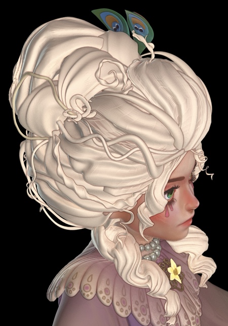 Тео — героиня фэнтези-книг Лоика Нотте. Безликие утащили девушку в Зазеркалье, чтобы сломленная подростковая душа стала одной из подчинённых Нарцисса. Однако брат и его друзья смогли её спасти. Теперь им всем предстоит пройти множество испытаний, чтобы понять природу связи между мирами. Особое место в образе Тео занимает костюм из сцены празднования Хэллоуина — символ внутреннего преображения героини. Именно этот образ я решила воплотить в концепте, а затем перенести в 3D.