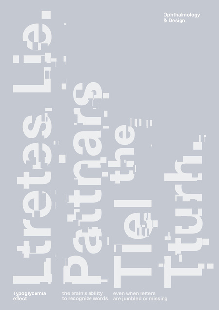 Аннотация Шрифтовой плакат «Ltretes Lie. Pettnars Tlel the Tturh.» исследует феномен Типоглицемия — способность человеческого мозга распознавать слова не по каждой отдельной букве, а по их общему силуэту. При чтении мы фиксируем взгляд на нескольких точках, а остальную информацию достраиваем автоматически. Этот процесс называют Bouma-shape recognition: набор верхних и нижних выносных элементов, длина слова и общий ритм штрихов формируют уникальную «облачную» форму, которую мозг мгновенно идентифицирует. В результате мы можем без труда прочитать текст, в котором внутренние буквы переставлены или даже частично отсутствуют, если сохранены первая и последняя буквы.