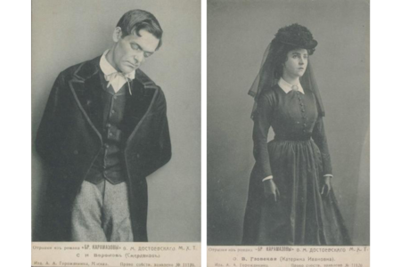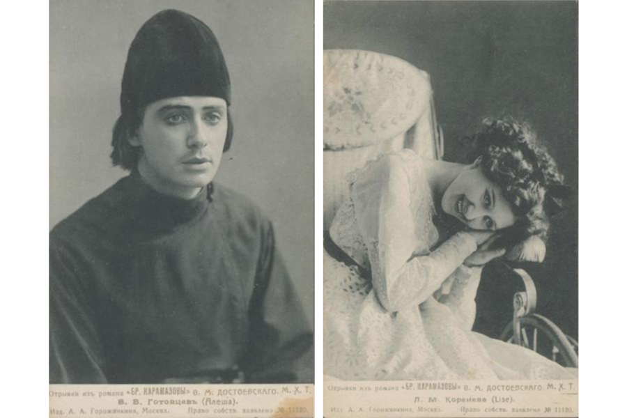 Фотоателье «К. А. Фишер» Николай Знаменский в роли Трифона Борисовича Ольга Гзовская в роли Катерины Ивановны С. Н. Воронов в роли Смердякова Дата съемки: 1910–1911