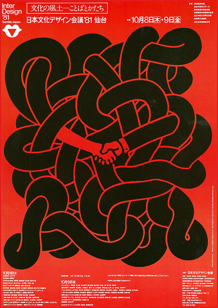 Сигео Фукуда плакат для выставки «Традиции и новые технологии» 1984 г / плакат для проектного семинара «Интердизайн» 1981 г