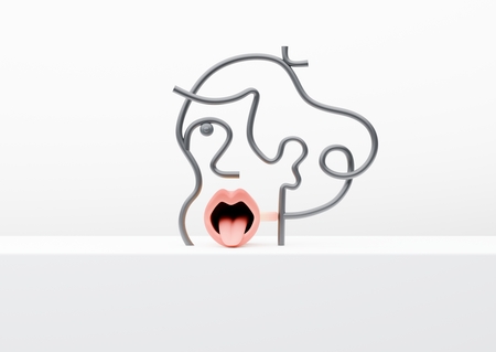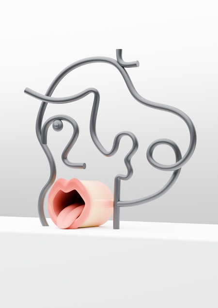 Повседневные вещи приобретают черты, форму и качества живого, вызывая телесный отклик на искусственное: чашка с губами, блюдце-щека, предлагающие задуматься о границе между искусственным и живым, желанием и неловкостью.