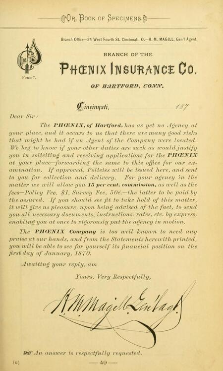 Свидетельство о смерти, Италия, 1889 г. / Документ Phoenix Insurance Company, 1870 г.