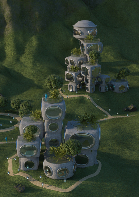 Город демонстрирует, как компактная вертикальная архитектура и модульное жильё способны интегрироваться в природный ландшафт.