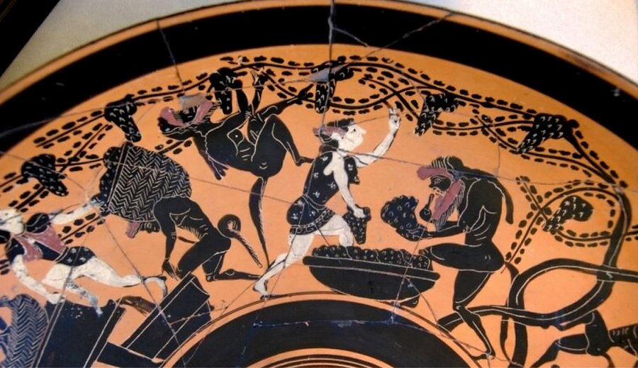 В древнегреческом искусстве виноград воспринимается, как ассоциация с богом вина Дионисом. Образ обретает символику производительных сил природы, веселья, вдохновения, радостного экстаза и театральности