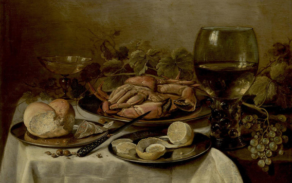 Натюрморт с морским крабом, рёмером и виноградом. Клас, Питер. 1644 г. Голландия