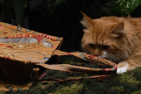 Фотосессия проходила в воссозданном зелёном оазисе с приглашением кошки на роль хищника.