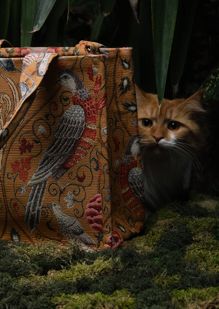 Идея фотосъёмки «Охота на птиц» погружает нас в захватывающее приключение в райском саду. Она позволяет оценить художественную красоту сумки с изображением птиц по мотивам художника Уильяма Морриса и поучаствовать в своеобразном сафари.