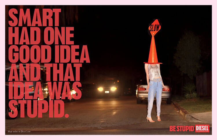 У Diesel — агрессия, юмор, абсурд, визуальный бунт и смысловая парадоксальность.