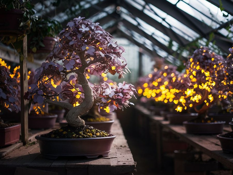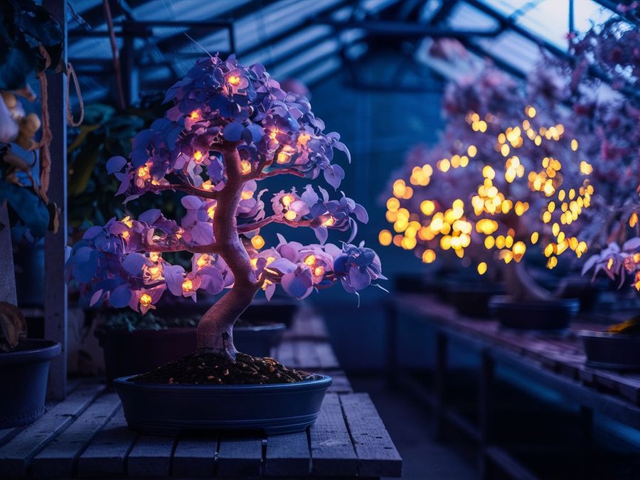 Дерево Remini в теплице при дневном и ночном освещении