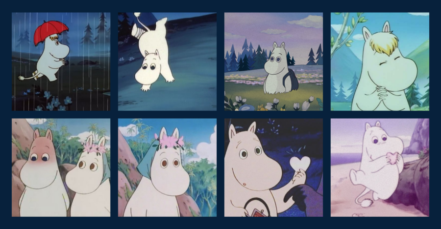 В кадрах представлены разные моменты жизни Муми-долины: прогулки у воды и в лесу, чаепития, семейные сцены, пейзажные зарисовки и моменты путешествий. Эти сцены передают ключевые элементы оригинального мира: близость к природе, неторопливость быта, важность общения и заботу друг о друге.