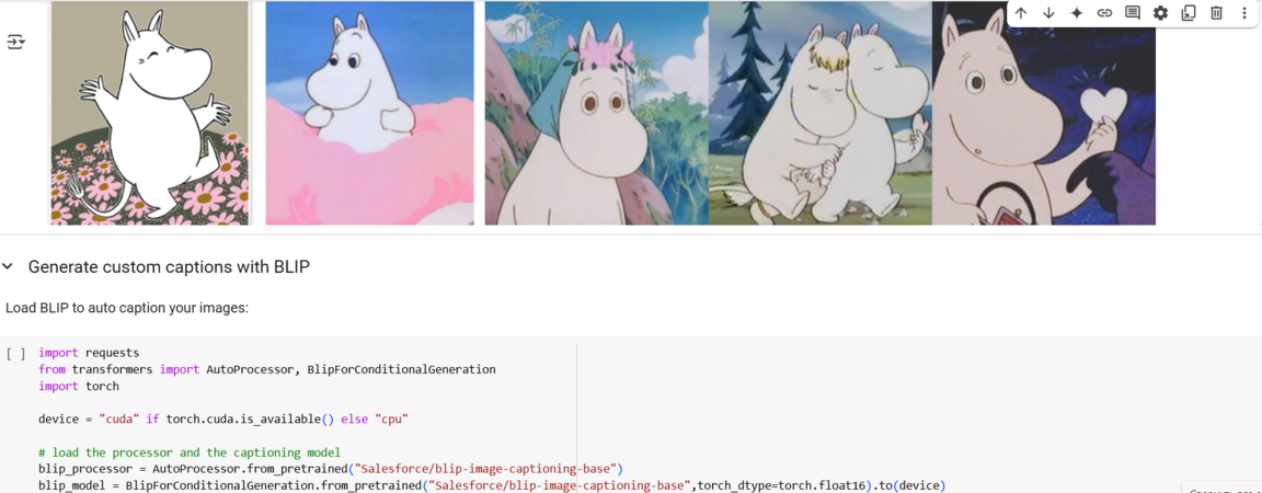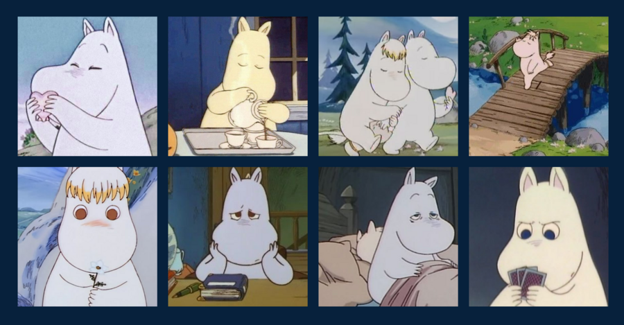 Для обучения модели я собрала набор изображений — чуть больше 30 кадров из классических мультфильмов 70-х годов и иллюстраций Туве Янссон.