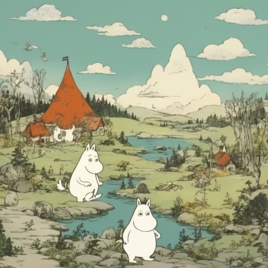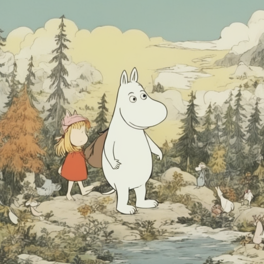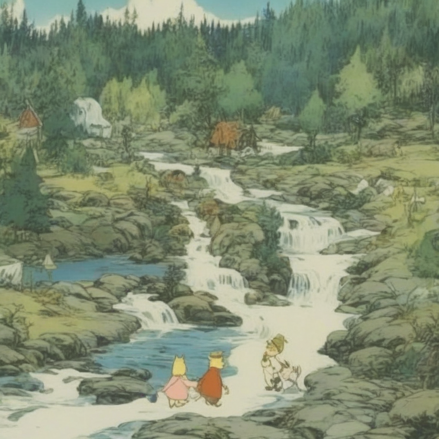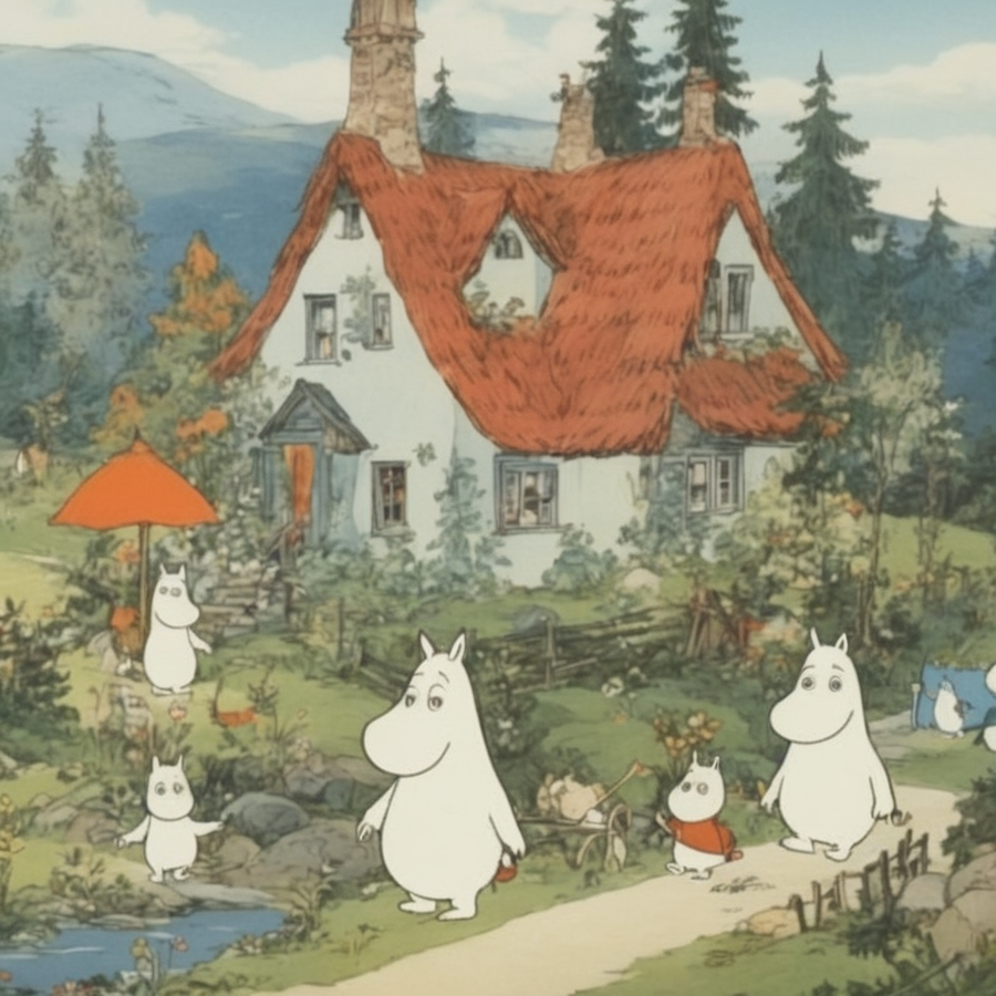 Серия изображений уверенно передаёт дух вселенной Муми-троллей. Для меня каждая сцена предлагает немного разное настроение и композиционное решение, сохраняя при этом общее ощущение уюта, природной гармонии и тихой радости. Визуально это не просто копия оригинального стиля, а скорее его вдумчивая интерпретация — с мягкими линиями, спокойной палитрой и узнаваемыми персонажами.
