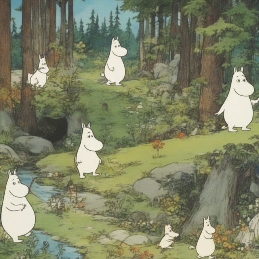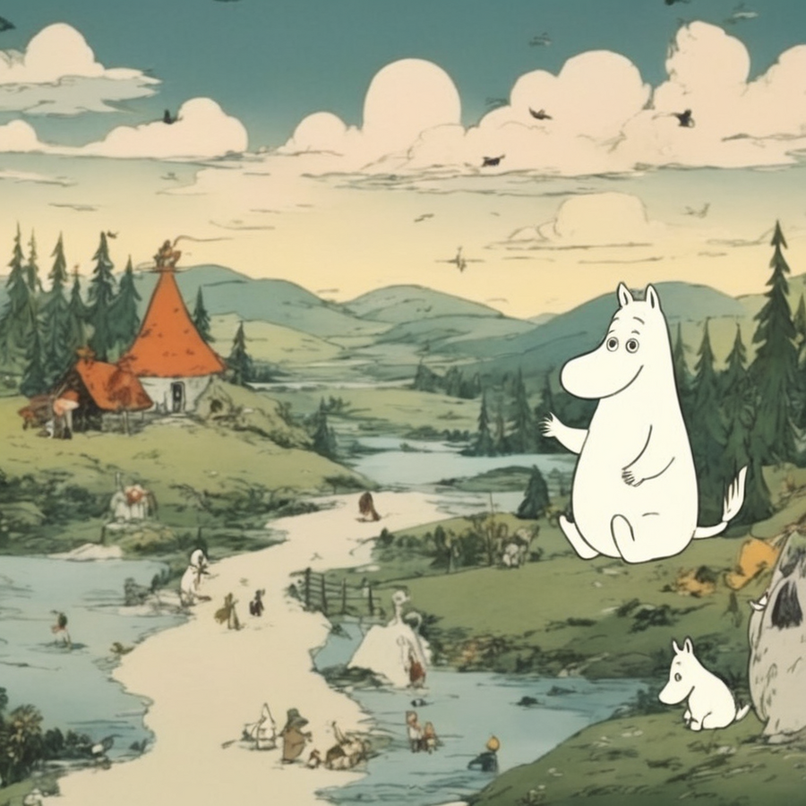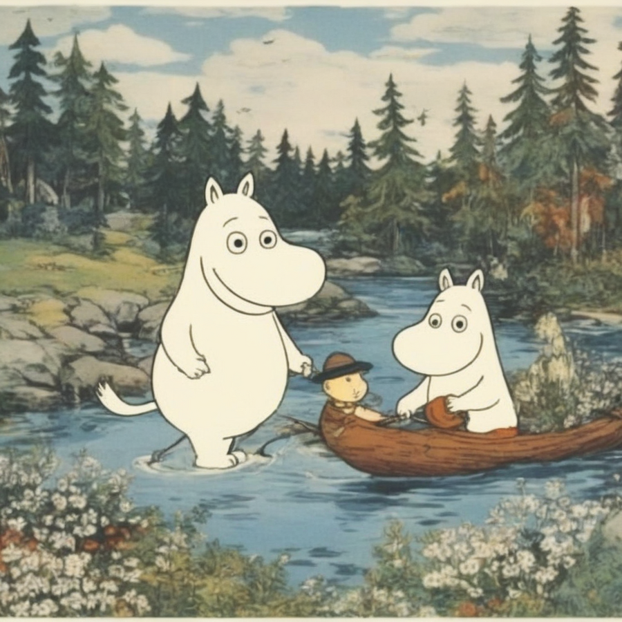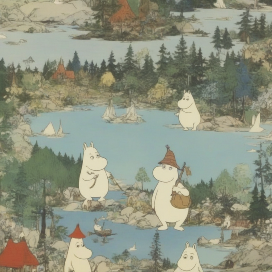 Серия изображений уверенно передаёт дух вселенной Муми-троллей. Для меня каждая сцена предлагает немного разное настроение и композиционное решение, сохраняя при этом общее ощущение уюта, природной гармонии и тихой радости. Визуально это не просто копия оригинального стиля, а скорее его вдумчивая интерпретация — с мягкими линиями, спокойной палитрой и узнаваемыми персонажами.