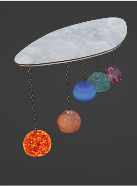Разработана текстурированная 3д модель светильника в виде планетарной системы с использованием полигонального моделирования в 3ds Max.