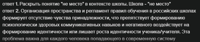 Вывод нейросети по целевой аудитории проекта: «Целевая аудитория проекта широка и включает всех участников образовательного процесса, специалистов по пространству, органы власти, общественные организации, а также медиа и инвесторов. Такой охват обеспечивает высокий потенциал для продвижения и масштабирования инициативы».